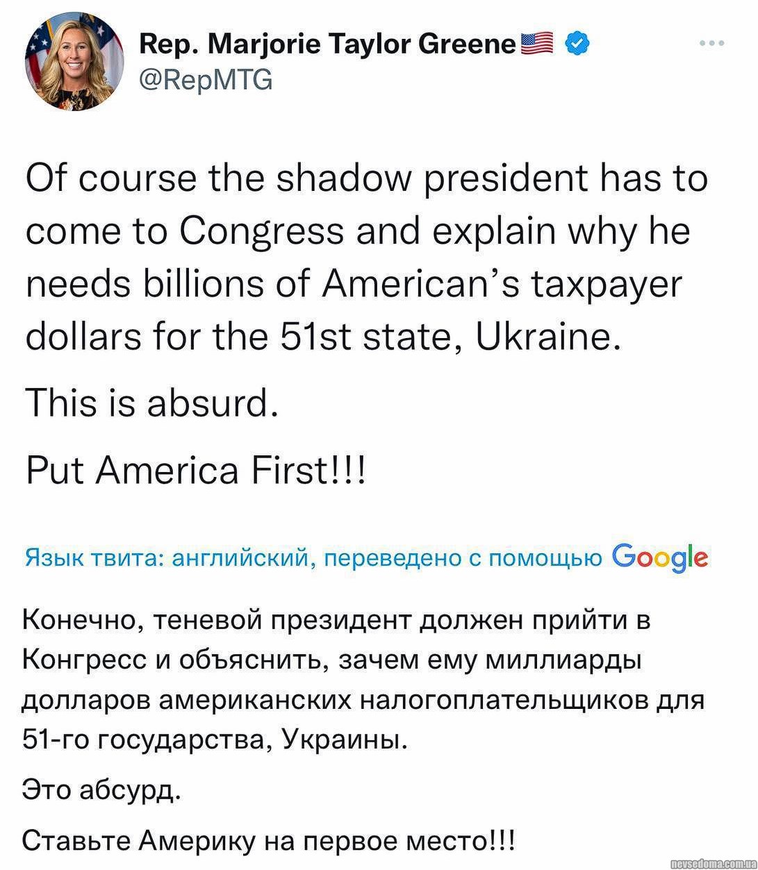 - Congresswoman Marjorie Taylor Green, who is trying to do everything to block aid to Ukraine, issued this post.