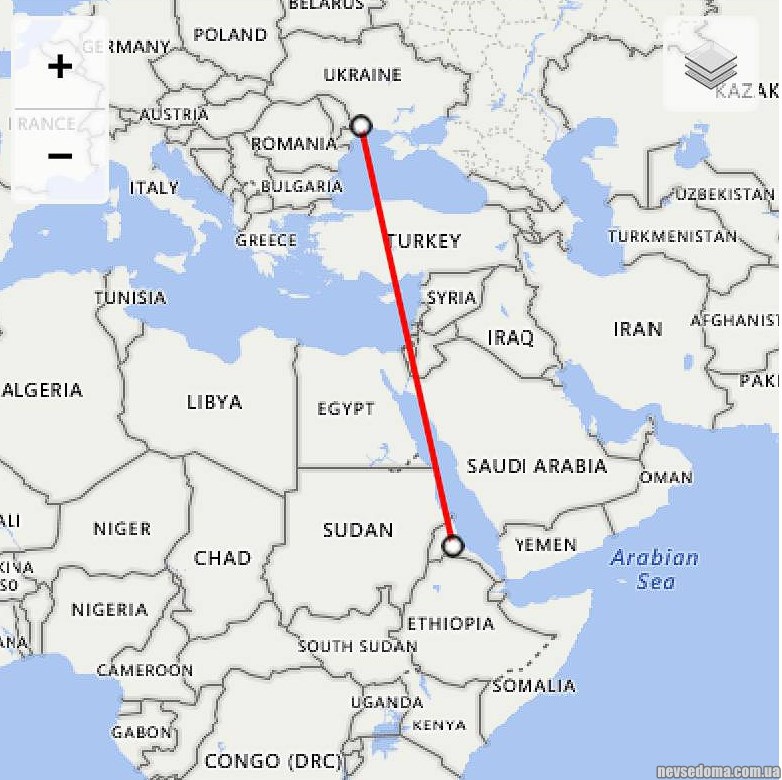 The second picture shows the approximate distance from Eritrea to Odessa.