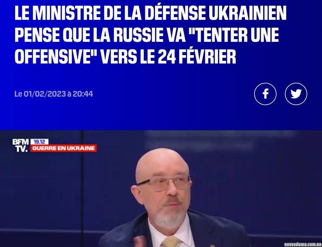Defense Minister Oleksiy Reznikov believes (https://www.bfmtv.com/international/europe/ukraine/le-ministre-de-la-defense-ukrainien-pense-que-la-russie-va-tenter-une -offensive-vers-le-24-fevrier_AV-202302010716.html) that the Russians "live in symbolism", so they can try to do something before February 24th.