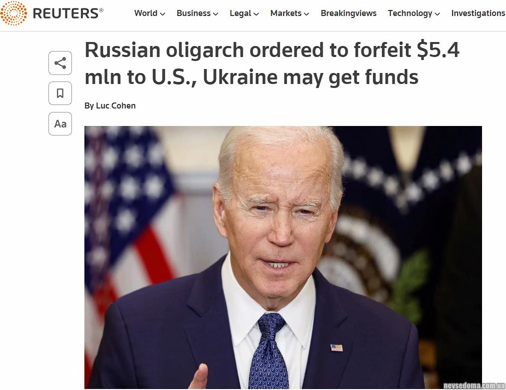 - $5.4 million will be confiscated from a Russian oligarch in the US, — Reuters.