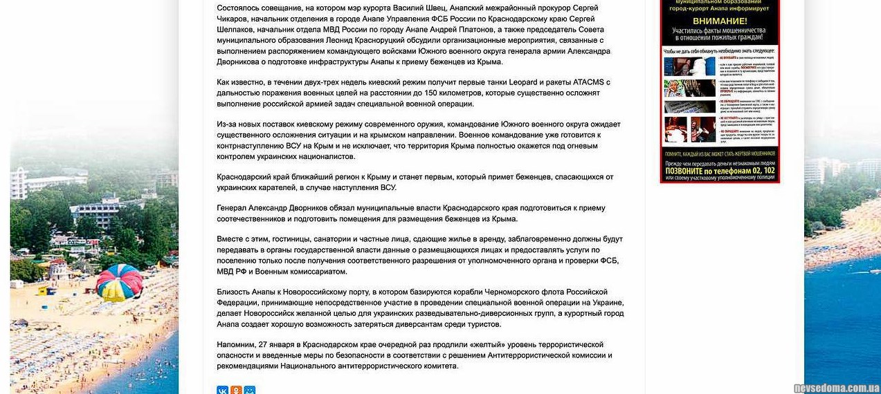- Anapa is preparing to receive refugees from the Crimea, – Russian media.