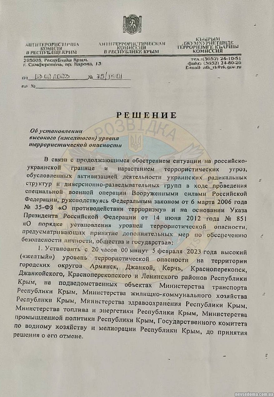 The decision states (https://t.me/DIUkraine/1967) that the units of the FSB of the Russian Federation operating in the Crimea and the linear department of the Ministry of the Russian Federation on Transport need to strengthen control over the movement of vehicles on the peninsula. Control over the movement of Russian citizens and foreigners is being strengthened.