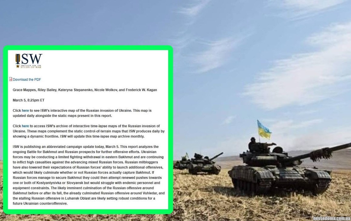 Analysts note (https://www.understandingwar.org/backgrounder/russian-offensive-campaign-assessment-march-5-2023) that the culmination of the current three Russian offensives is likely to allow Ukrainian forces to launch a counteroffensive in any location along the front line which they deem most suitable for such operations.