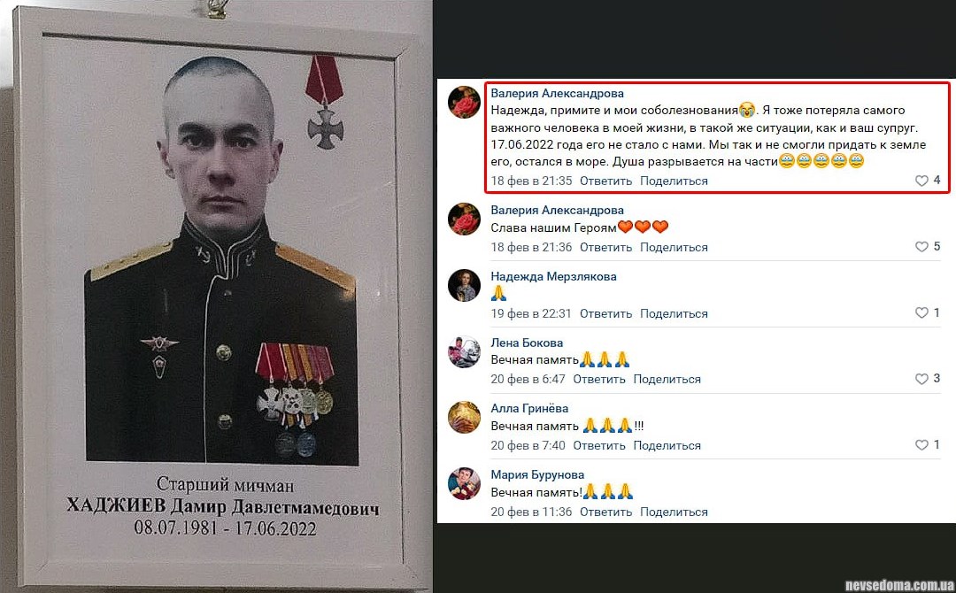 ▪️Senior midshipman Khadzhiev Damir Davletmamedovich, born in 1981 after a mysterious (come on!) incident on 17/6/22 (hmm, what could it be🤔), according to relatives, he “couldn’t land and stayed at sea.”