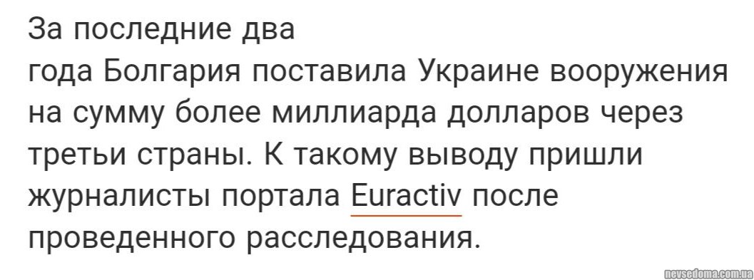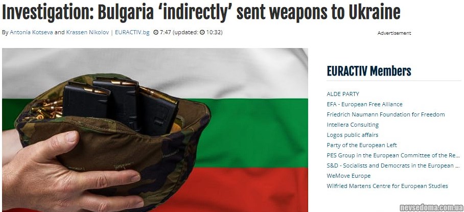 - Bulgaria sent weapons worth $1 billion to Ukraine through intermediaries, — Euractiv.