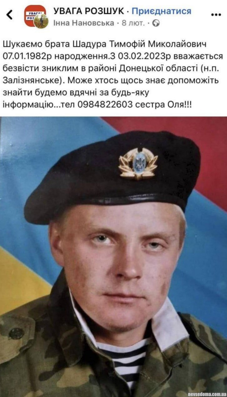 Deceased — Timofei Shadura, he has been missing since February 3.