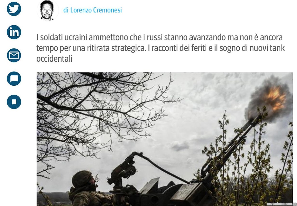 "Occupants have advanced in recent days in the center of Bakhmut, and our supply lines have become more fragile. Our task — is to destroy the maximum number of Russian soldiers while we are preparing the offensive. If it gets too hard, we will retreat", — told (https://www.corriere.it/) a fighter of the Armed Forces of Ukraine.