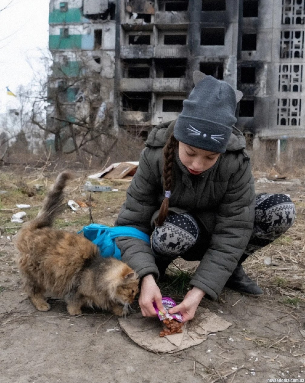 - 10-year-old Veronika visits the ruins of a multi-storey building in the center of Borodianka, Ukraine every day to feed three street cats. Like her feline friends, Veronica also lost her home after it was destroyed by an airstrike. (3 photos)