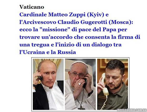 - Ukraine and the Russian Federation agreed to the proposal of the Pope to receive his special envoys in order to discuss a truce, — Il Sismografo