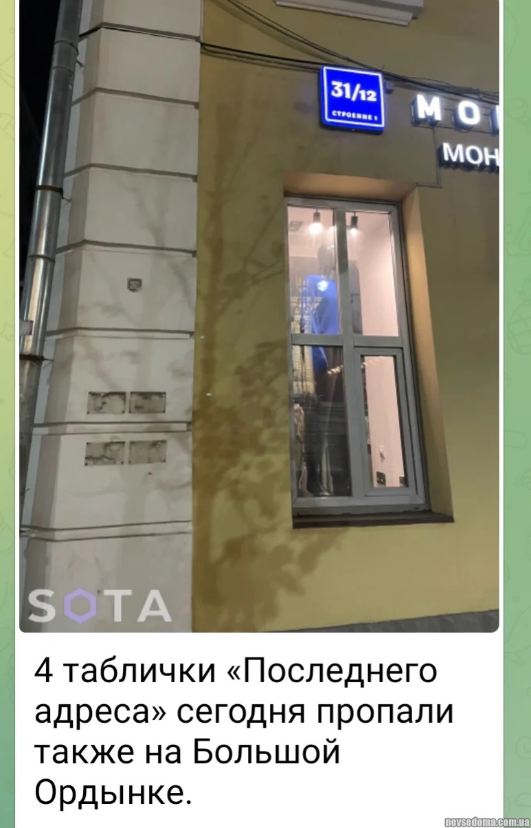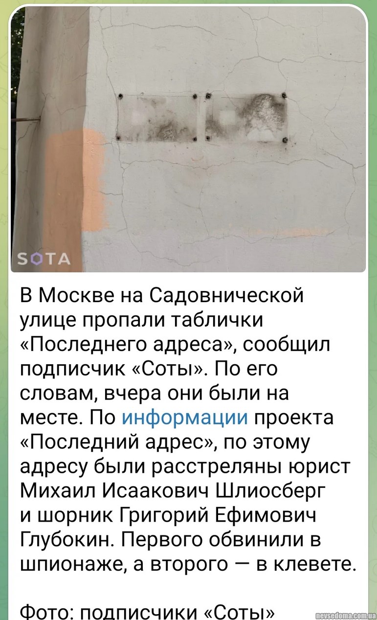 - In Moscow, the "Last Address" plaques began to disappear - memorial plaques with the names of the victims of the repressions of the 1930s. SOTA