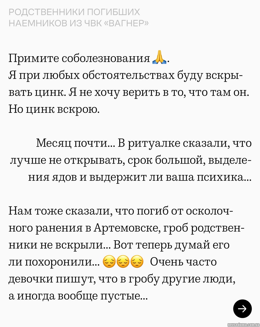 - "Mom went to the administration, they said convicts are not buried with honors. They said horns and legs from the body, there is nothing to transport. And there is no point — empty coffin. They took 60 tons from her for cremation, 10 tons for opening zinc, and 17 tons for a photo.