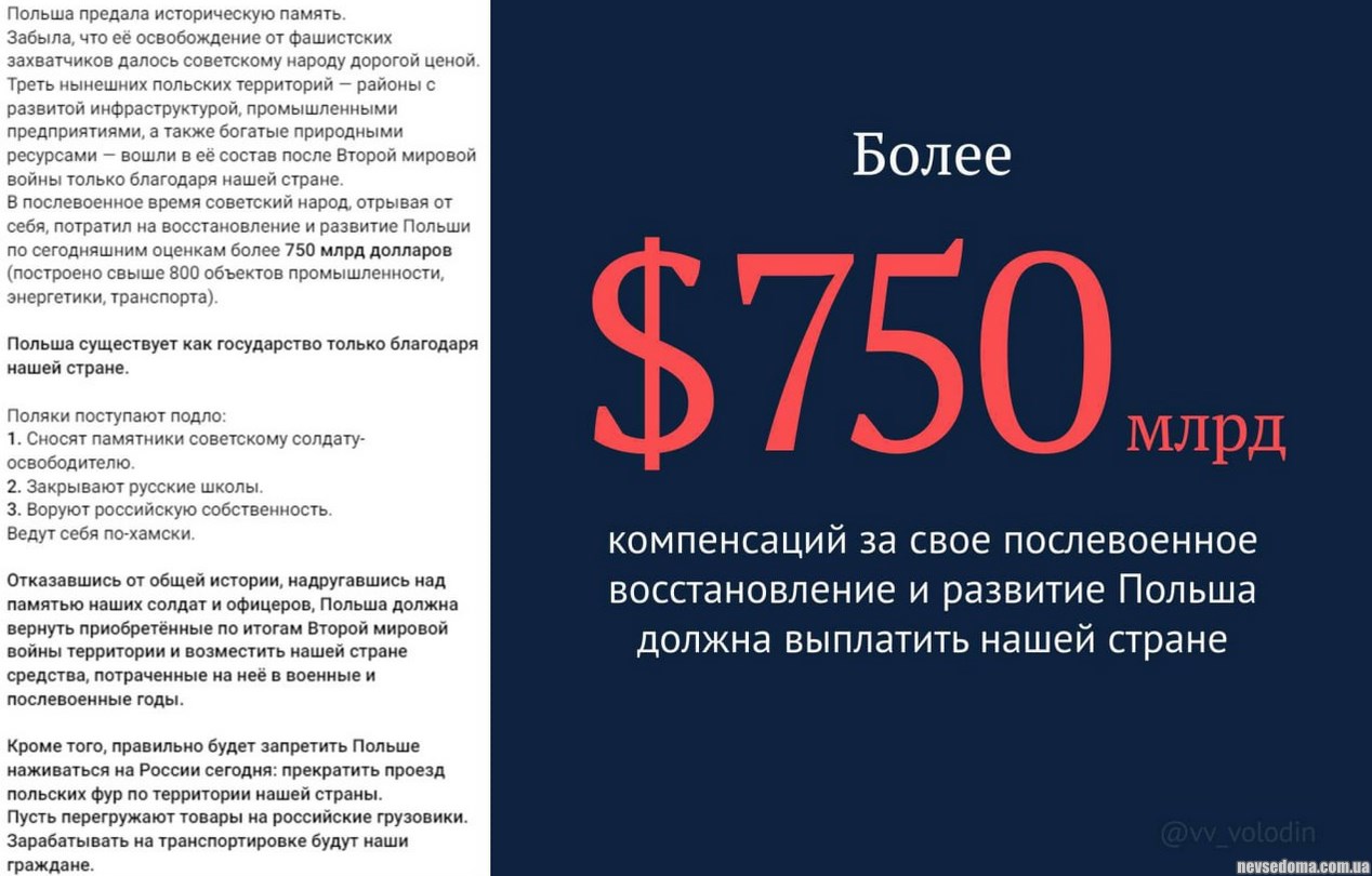 - The State Duma of the Russian Federation will vote tomorrow to bill Poland for 750 billion dollars for liberation from the Nazis