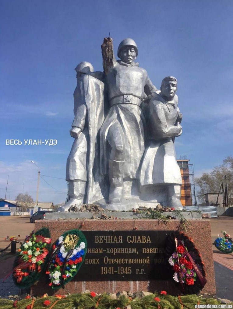 - Symbolic from Buryatia — in the city of Khorinsk, near the monument to the soldiers who fell in the battles of the Great Patriotic War, a hand with a machine gun fell off