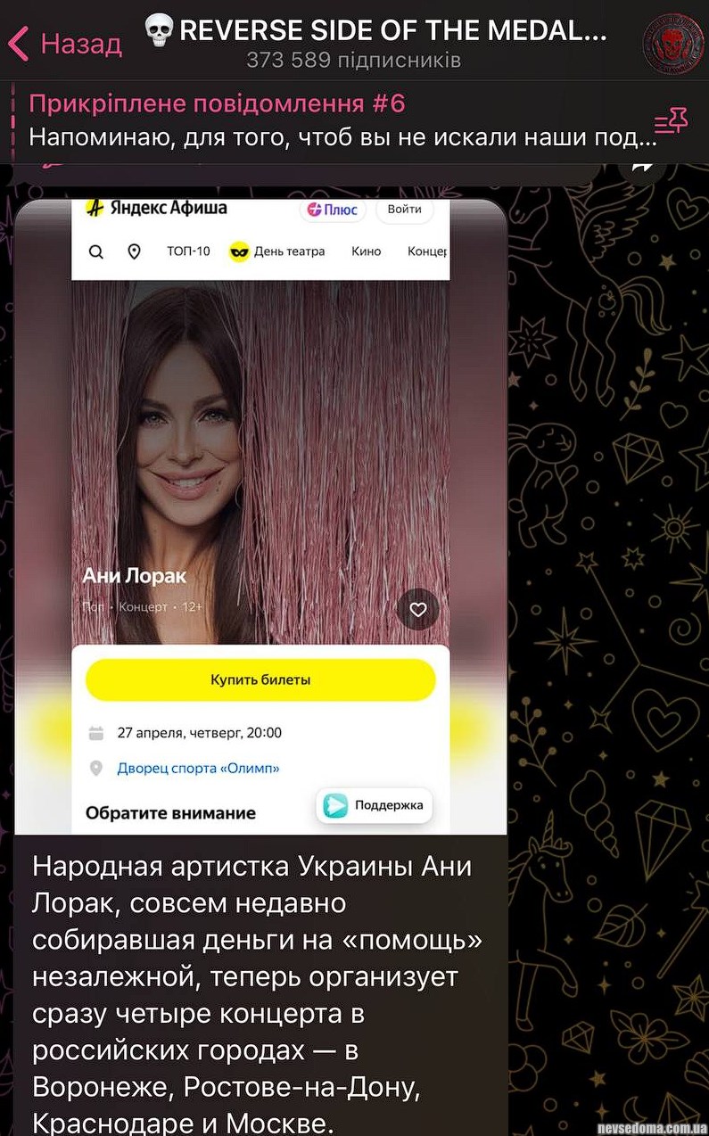 - Because of the jokes of Ukrainians about helping Ani Lorak to the Armed Forces of Ukraine, all concerts in Russia were canceled for her