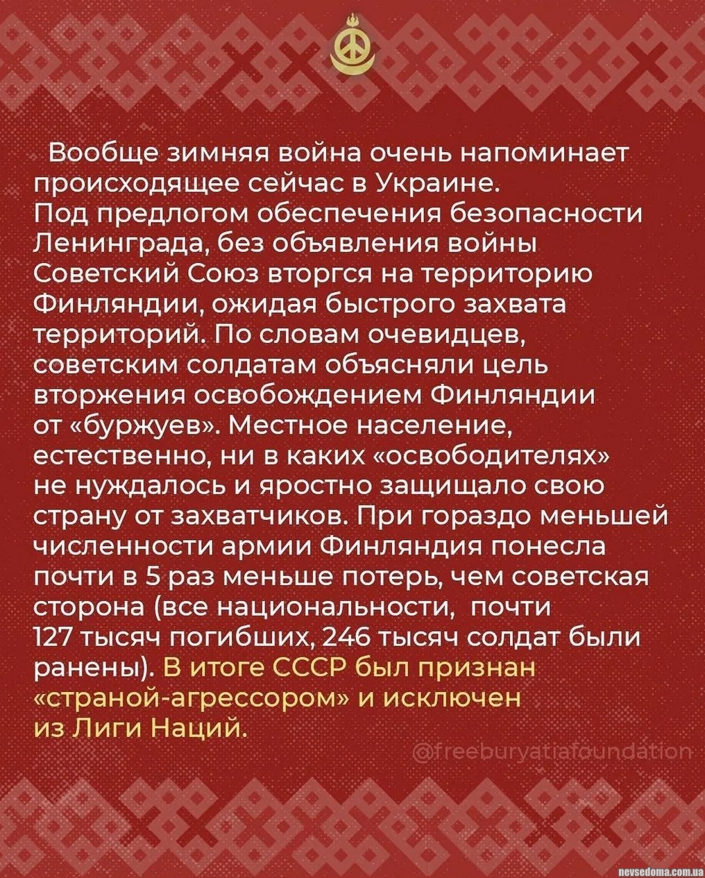 - The Russian Finn talks about the Soviet-Finnish war, comparing it with the current one and why fighting on the side of the attacker is certain death. Free Buryatia Foundation