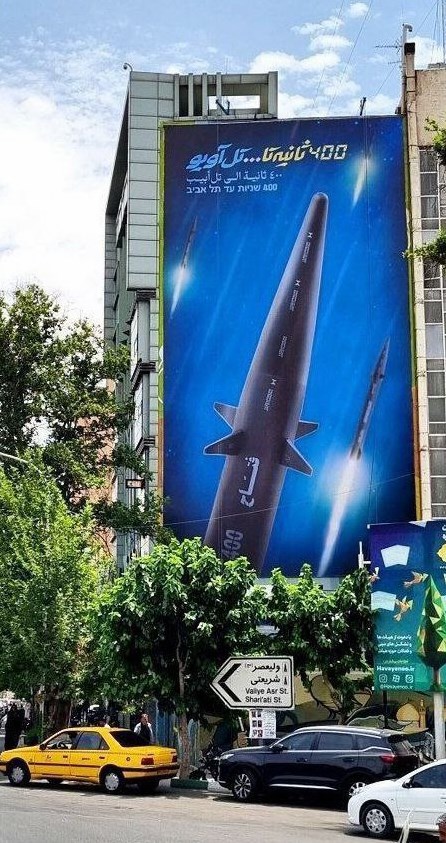 Tehran. Billboard with the new Iranian hypersonic missile Fattah.