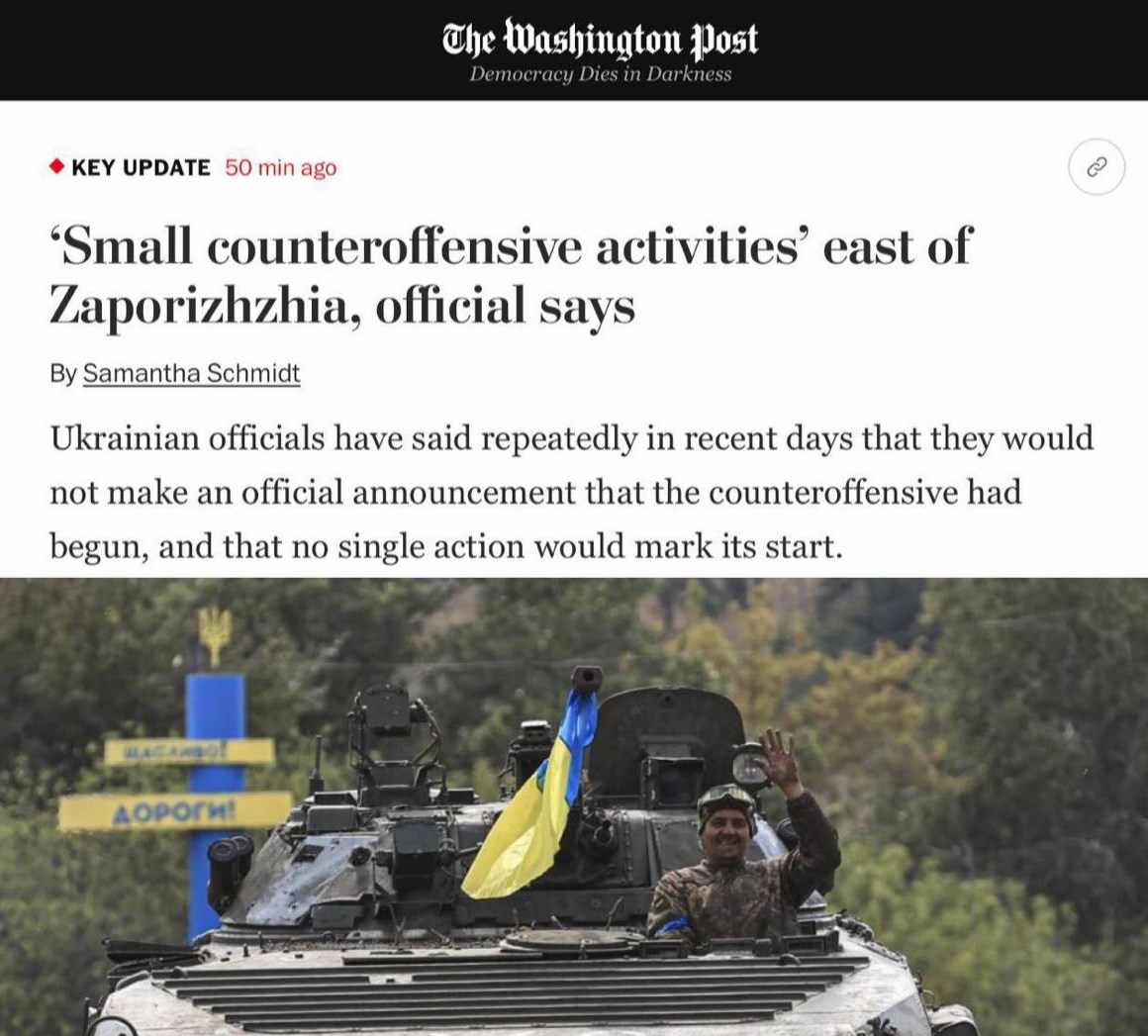 - Armed Forces of Ukraine launched an offensive in the Zaporozhye region, — The Washington Post.