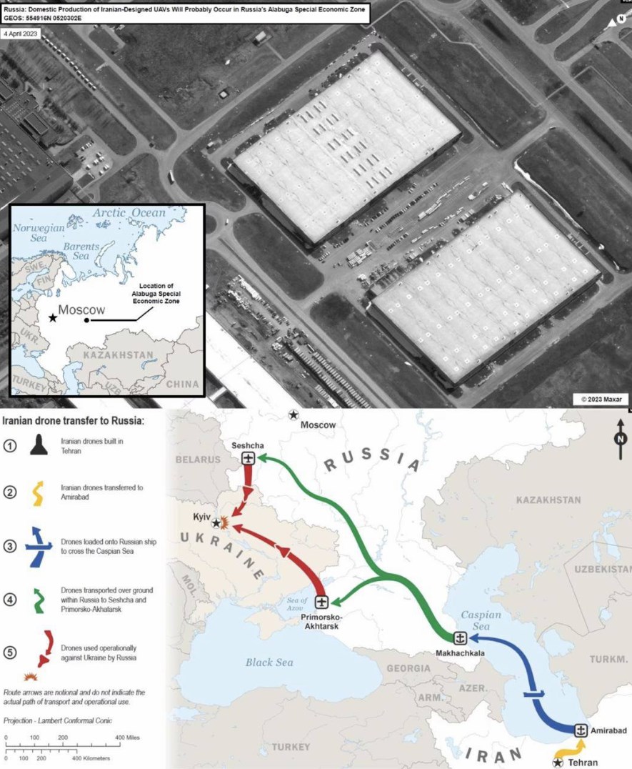 Iran helps Russia build a drone base east of Moscow for the war in Ukraine. This was stated by the White House, according to which the plant should reach full capacity in early 2024.
