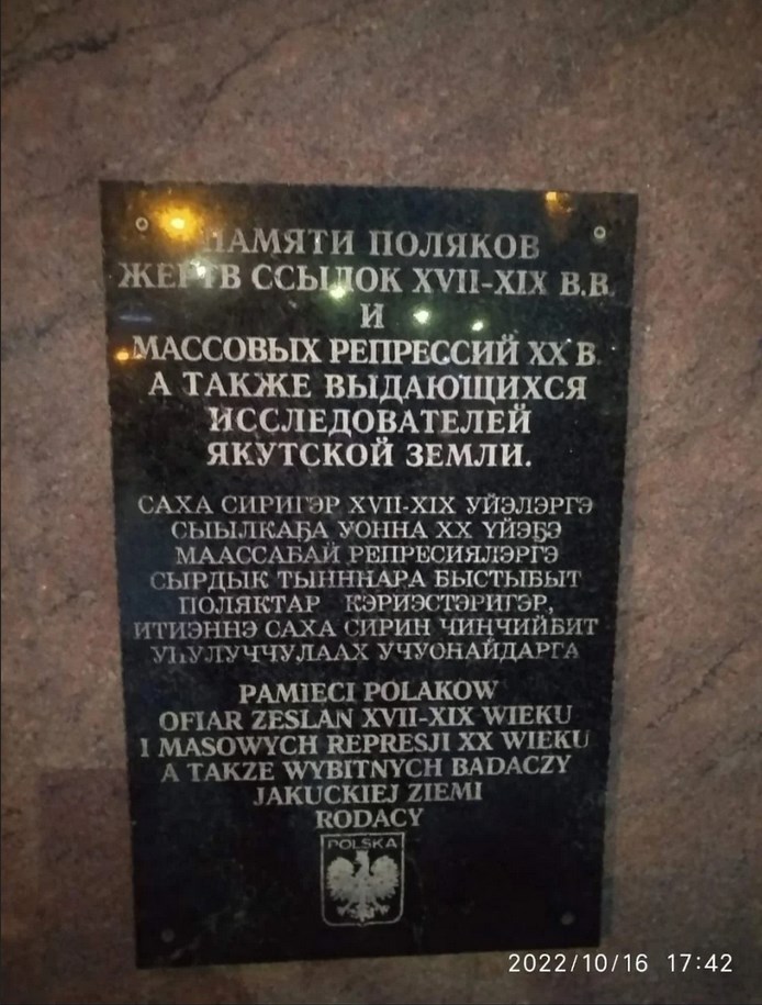- In Yakutsk, plaques with their names and descriptions of merits disappeared from the monument to the exiled Poles and Lithuanians