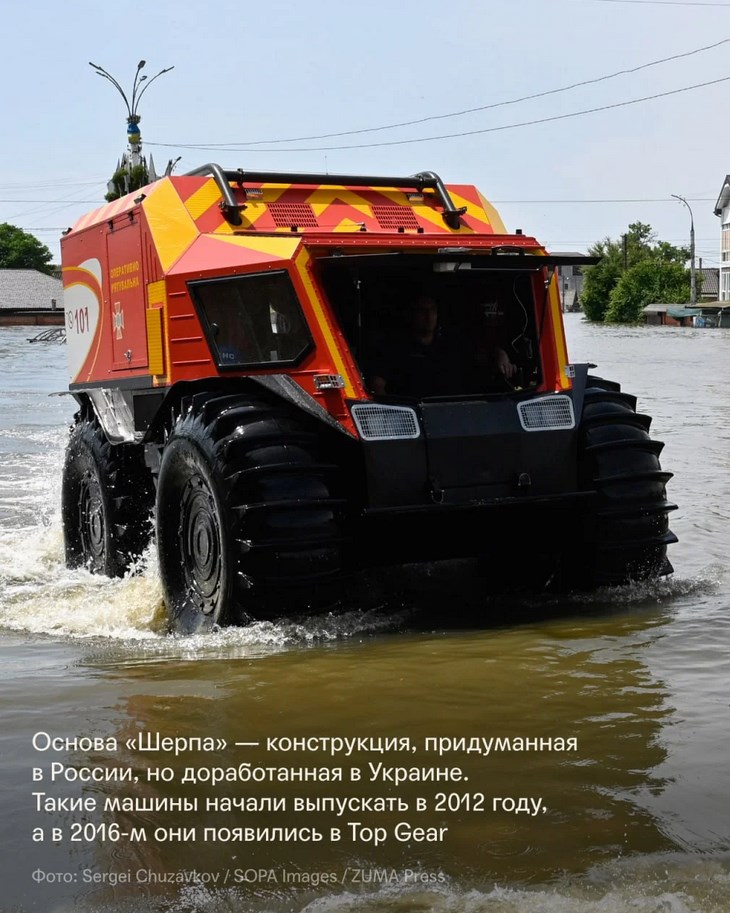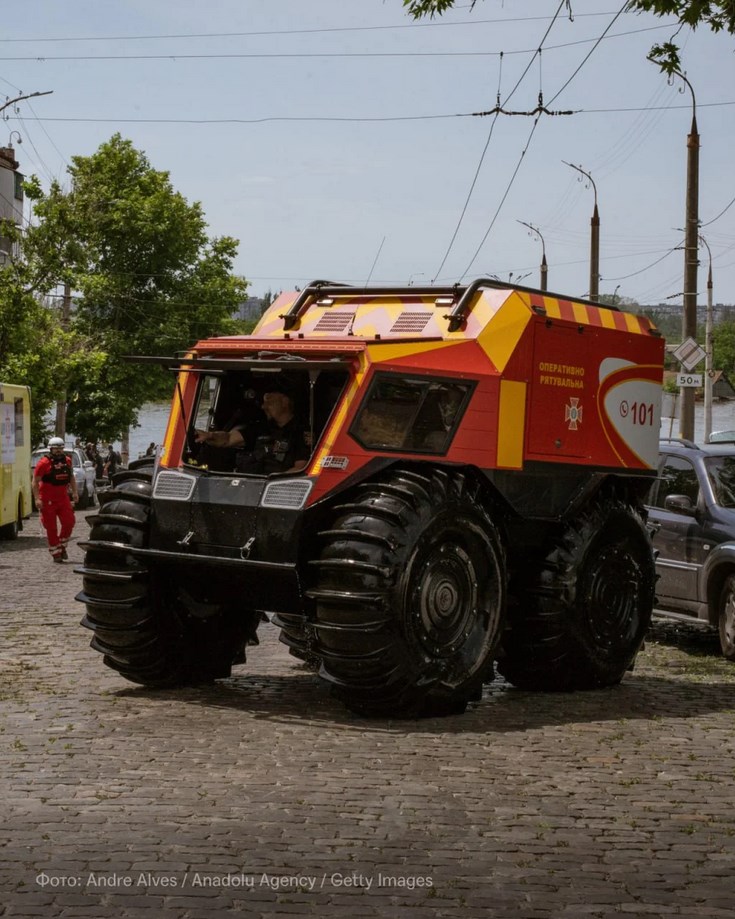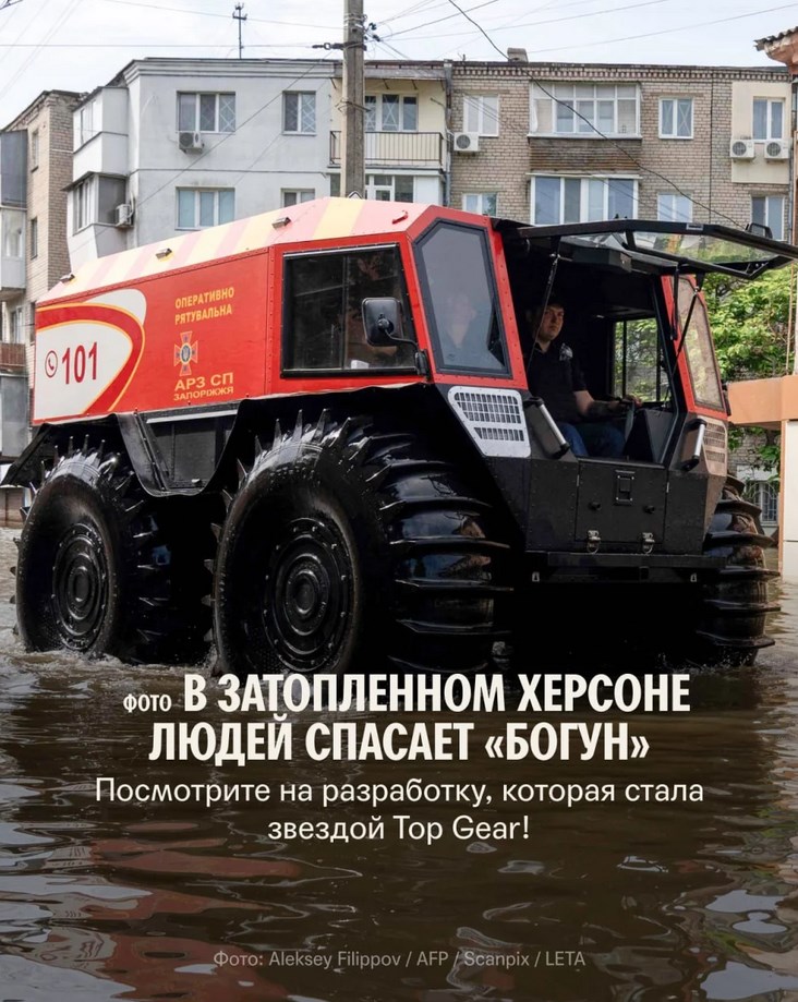 - Such an all-terrain vehicle saves people in Kherson. This is "Bogun" — a kind of all-terrain vehicle "Sherp". It can ride on almost any surface, floats and is able to evacuate people.