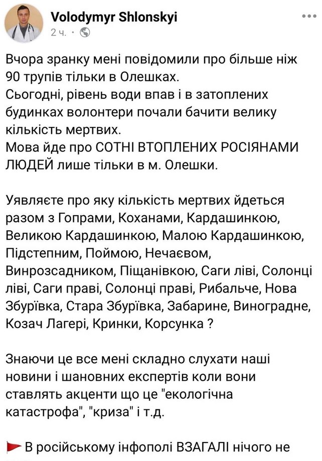 - From the disaster zone — to the Black Sea. A large amount of fresh water was thrown into the Black Sea. “That is, this is a huge damage to the Black Sea. When the damage is calculated — it will be billions., — told «MO» Ukrainian, whose relatives live in Kherson.