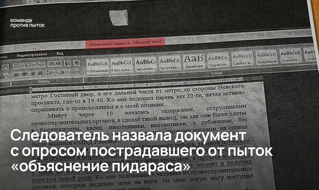 - Investigator from St. Petersburg called the interview of the victim of torture in the police "an explanation of the faggot"