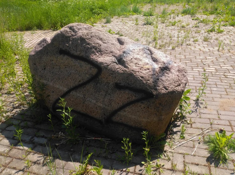 Photos on the eve published in «VKontakte» eyewitness. The letters Z are painted on the memorial sign and the cross, and an insult is left on the pedestal near the cross.