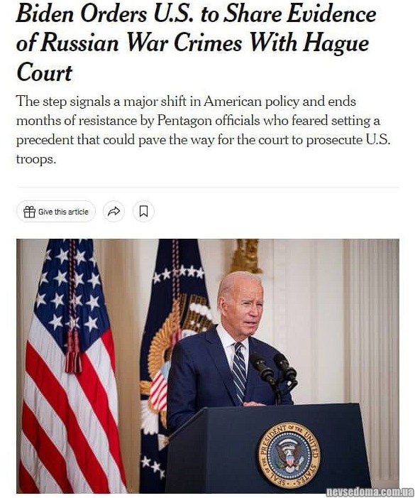 - Biden ordered the transfer of evidence of Russian war crimes in Ukraine to the International Criminal Court.