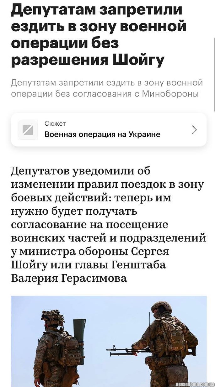 - Deputies must obtain permission from Shoigu to travel to the war zone