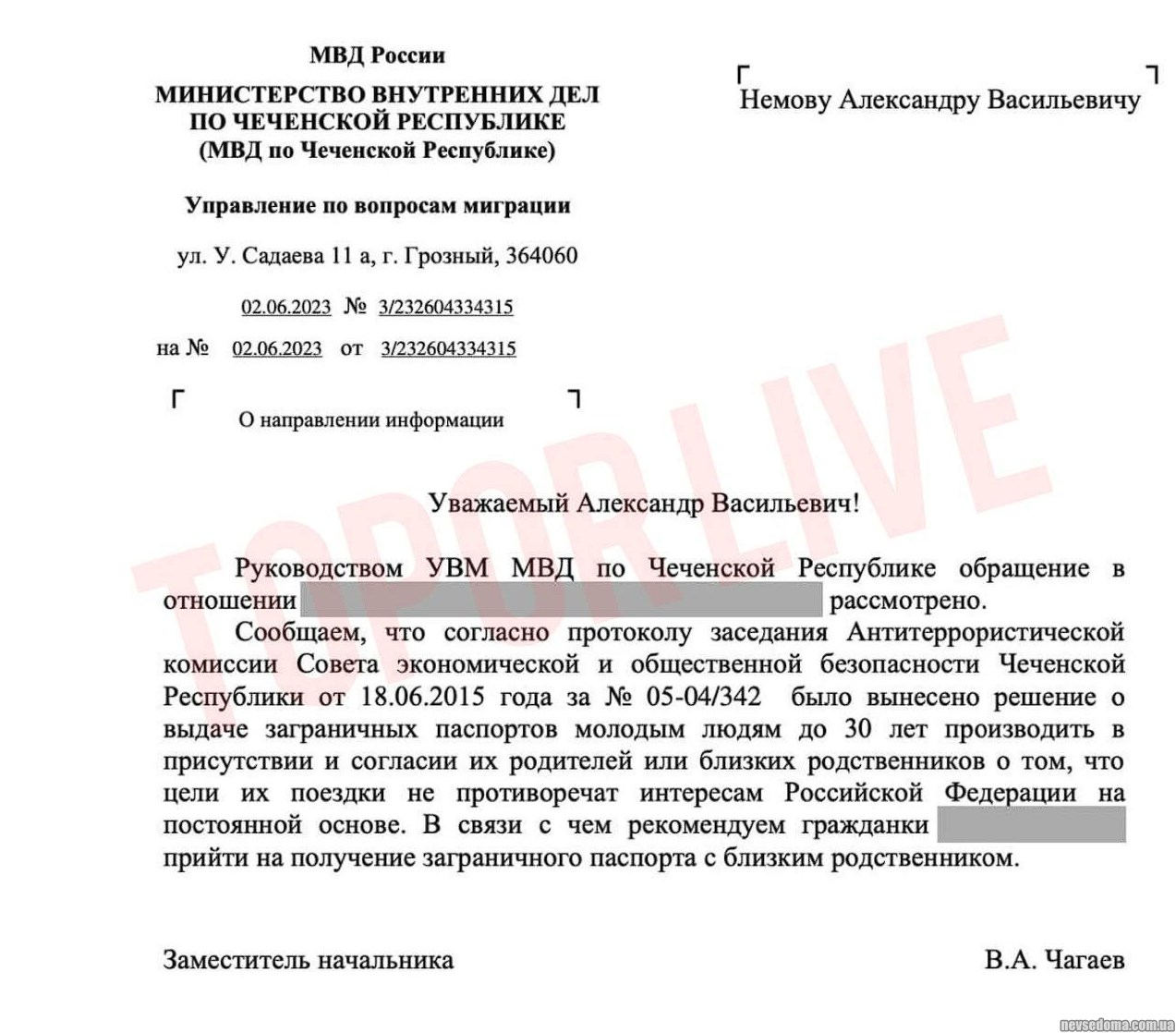 - In Chechnya, they stopped issuing passports to people under 30 without the presence of older relatives
