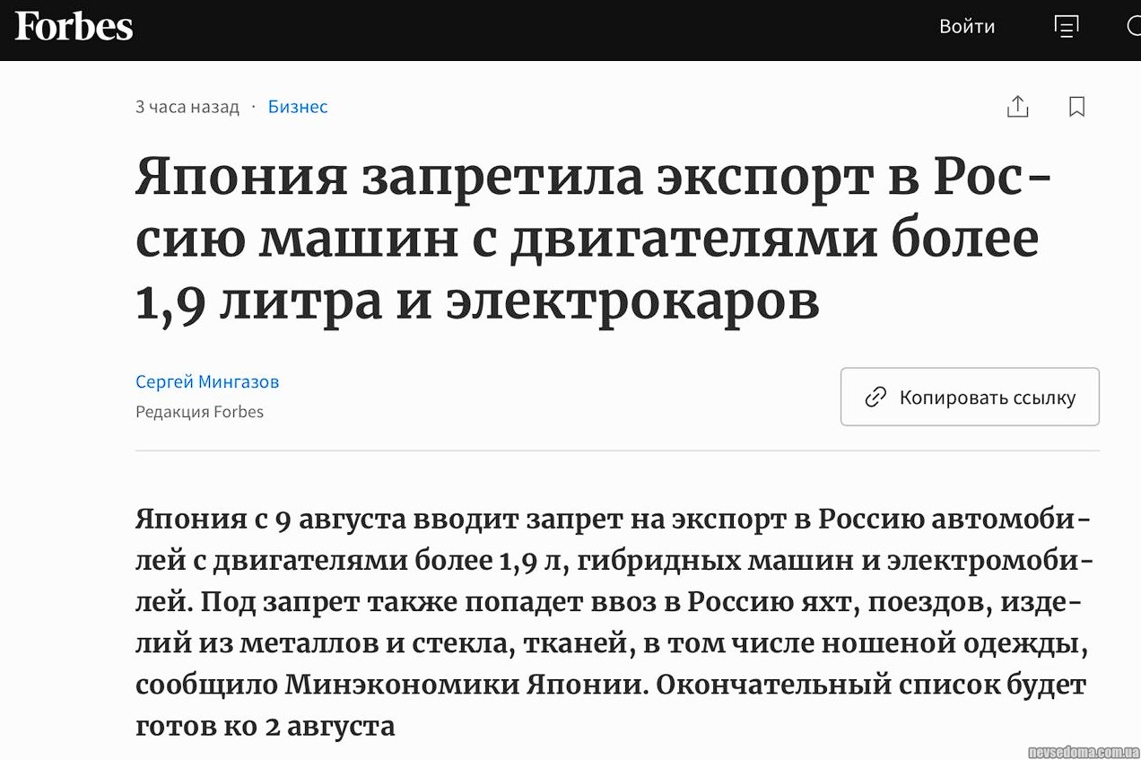 - Japan expands the list of goods prohibited for export to the Russian Federation. This time it's cars.