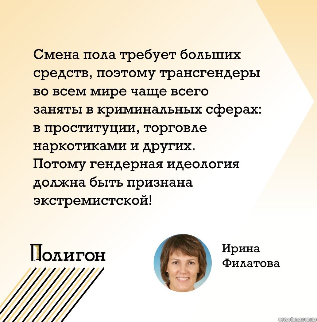 - State Duma deputy from the Communist Party of the Russian Federation Irina Filatova proposed to recognize transgender transition as extremism