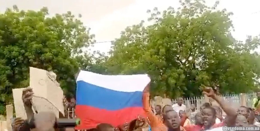 -Residents of Niger celebrate with Russian flags the coup of the western-backed president. According to Sky News, the Russian Federation may be positive about the coup