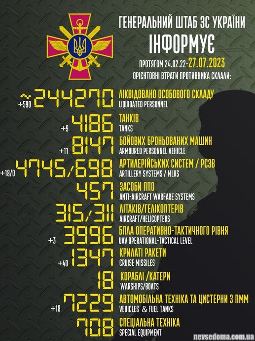 Ukraine has intensified hostilities, mainly in the Zaporozhye direction, but they have not been successful.