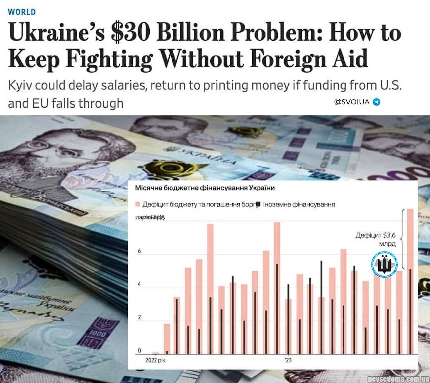 - If Kyiv stops receiving assistance from the US and the EU, Ukraine will begin to delay salaries and print money, writes The Wall Street Journal.