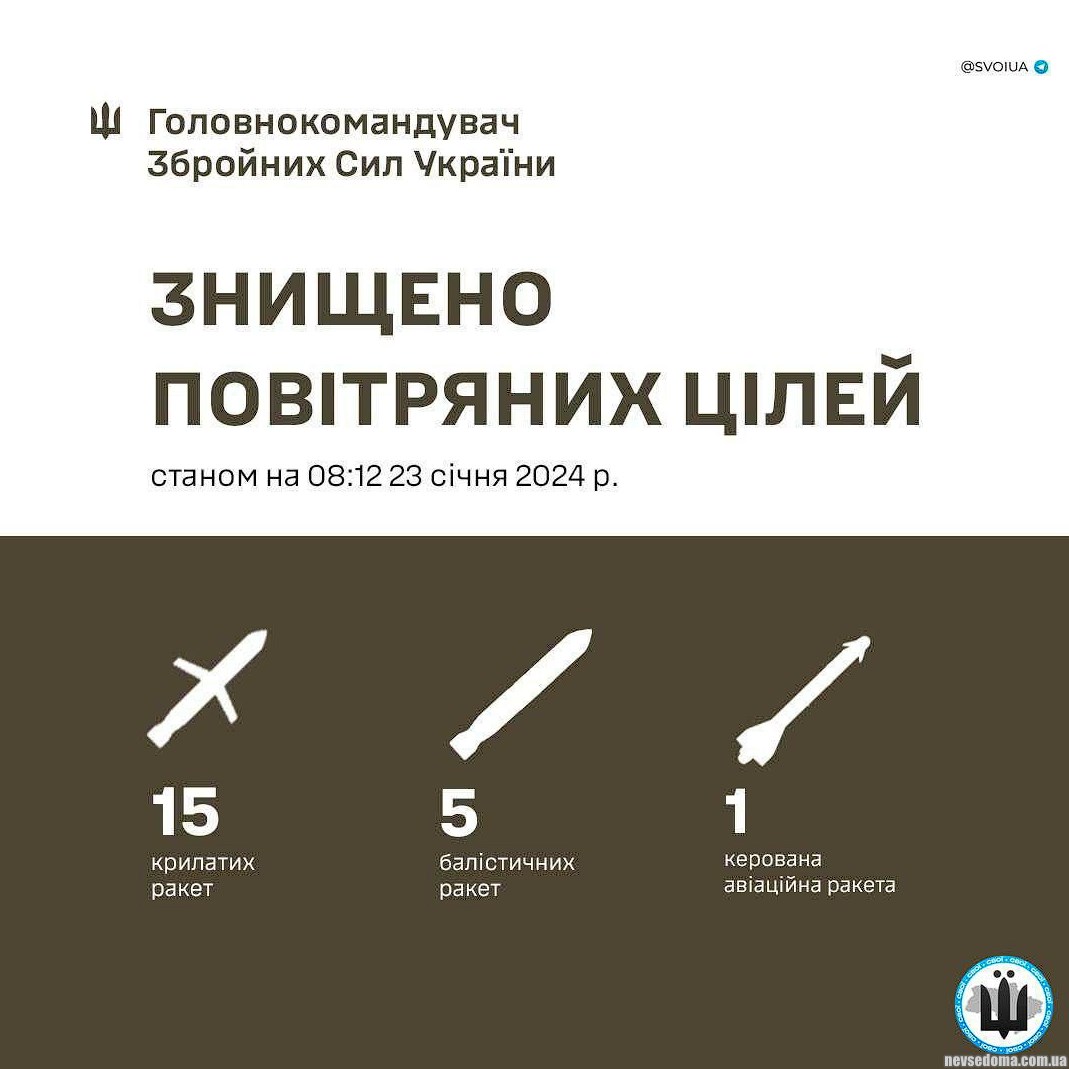 - 21 missiles out of 41 were destroyed over Ukraine at night, - Zaluzhny