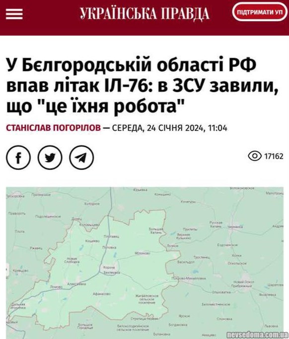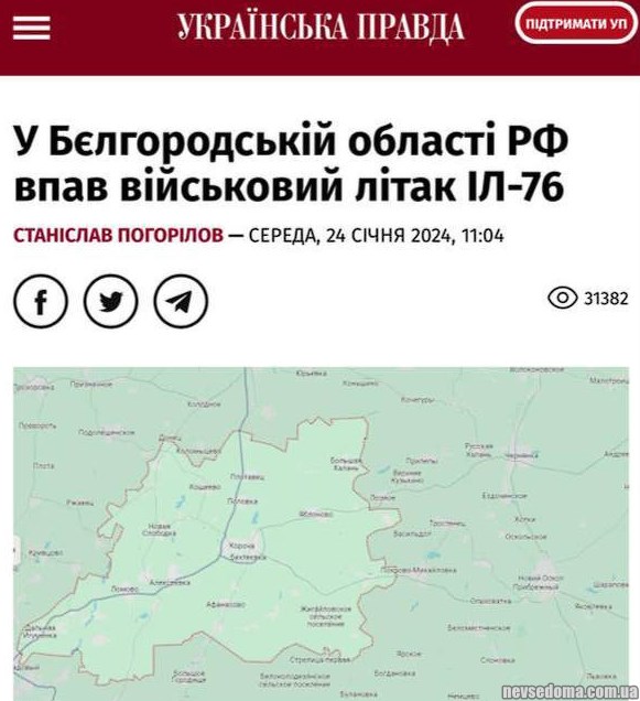 "Ukrainian Pravda", which reported with reference to a source that the Russian Il-76 plane was shot down by the Ukrainian Armed Forces, edited the news, removing from it all references to the downing of the plane and that it was "the work of Ukrainian security forces." Armed forces."