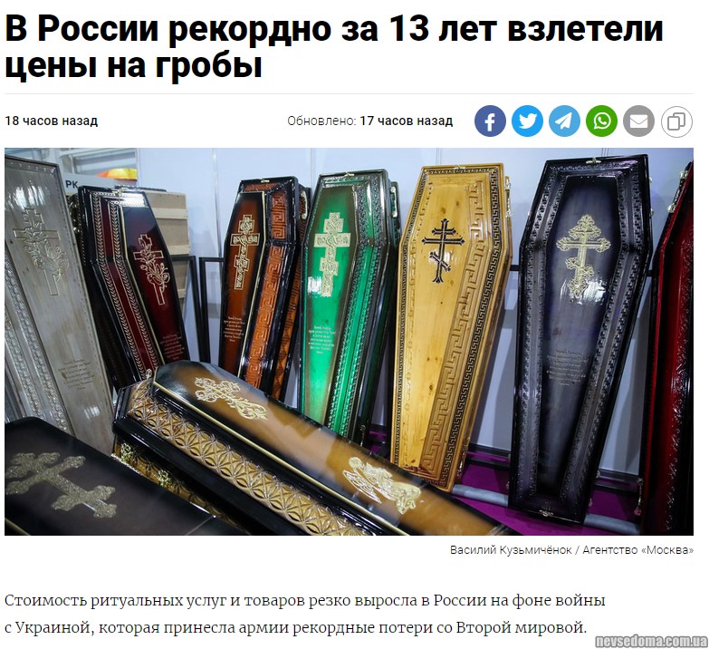 - In Russia, prices for coffins have risen to a record level in 13 years