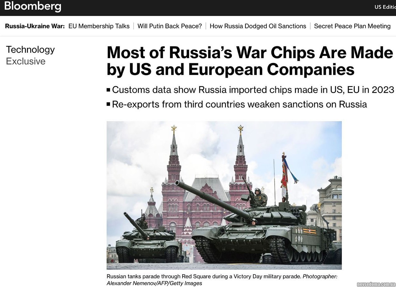 More than half of the total volume of imported semiconductors and integrated circuits during this period came from Western companies, Bloomberg notes.
