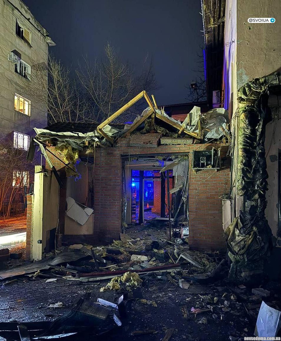 One drone flew into a high-rise building, causing a fire. Another struck drone pierced the roof of a two-story house. There was also a hit in the warehouse of a furniture factory, where a fire broke out.
