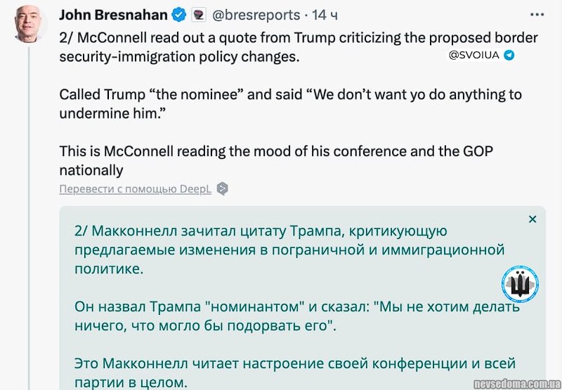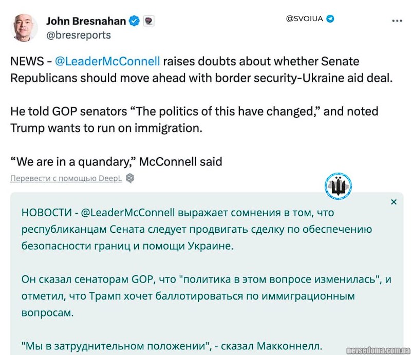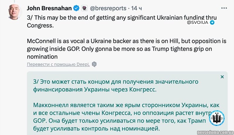 - Financial support from the United States for Ukraine may be delayed until the November American elections, - Senate Republican leader McConnell.