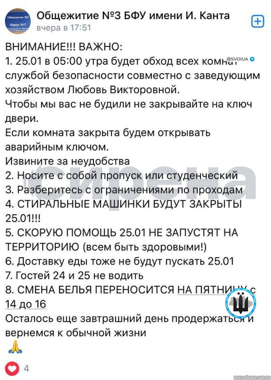 - On the day of Putin’s arrival, Kaliningrad students were forbidden to get sick, order food and wash clothes