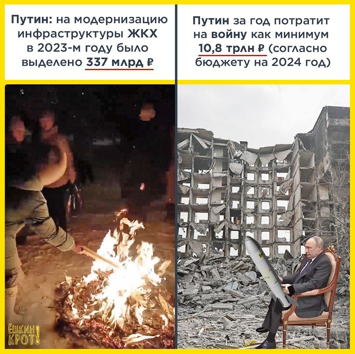 but for an unnecessary war in which hundreds of thousands of people die, 10.8 trillion rubles have been allocated for 2024 alone.