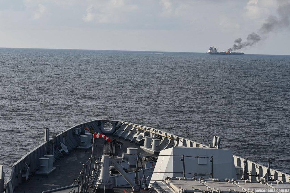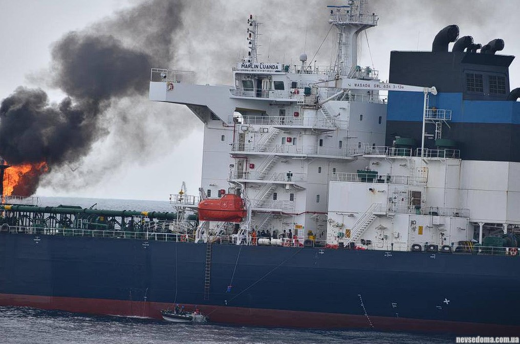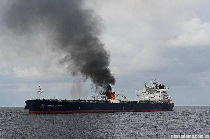 Russian oil tanker Marlin Luanda carrying British fuel caught fire after being hit by a Houthi missile.