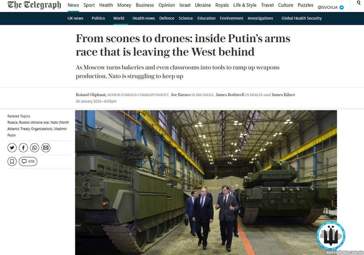 - Russia intends to wage war for another 3-4 years, as evidenced by the increased development of its military production - The Telegraph.