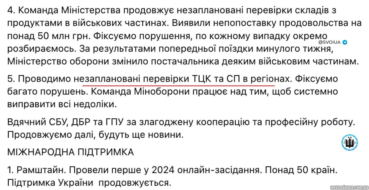 - The Ministry of Defense conducts unscheduled inspections of TCC and joint ventures in the regions. Many violations are recorded - Umerov.