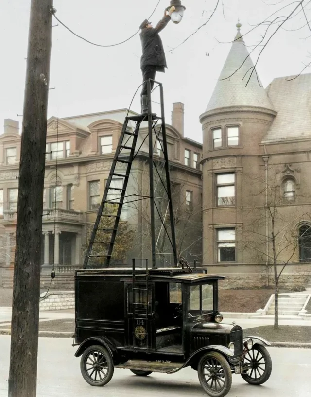 Вантажівка для обслуговування вуличного освітлення, 1926 рік.