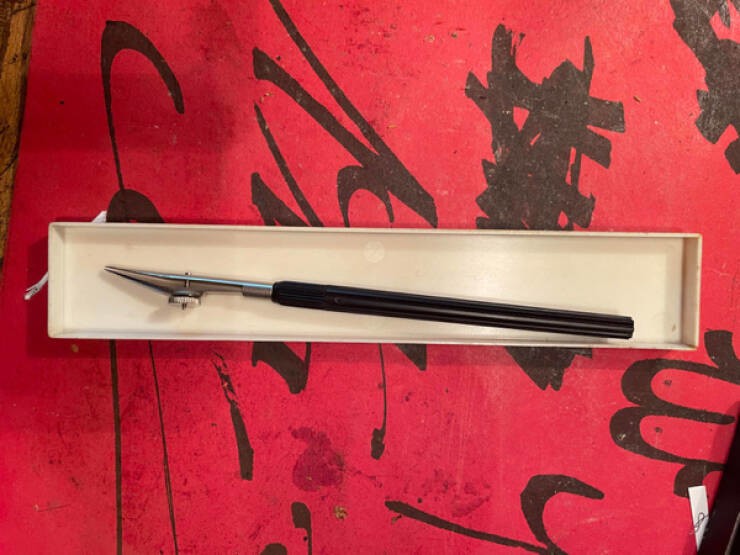 19. «Довгий інструмент із металевим циферблатом нагорі, який можна крутити. Можливо, це щось для каліграфії»