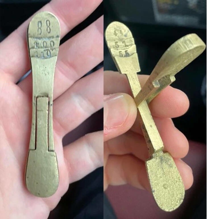 11. «Латунний інструмент, сімейна загадка, 3-4 дюйми в довжину, можливо, він якось пов'язаний із мореплаванням»
