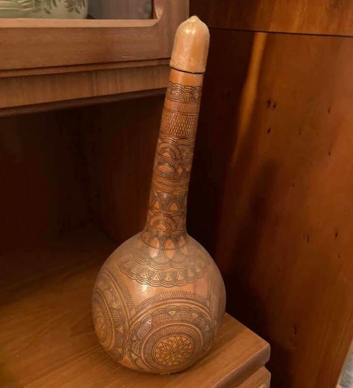 : «Схоже на горлянку, яку прикрасили. Якщо це не музичний інструмент (всередині є бісер?), то, мабуть, чисто для оздоблення».